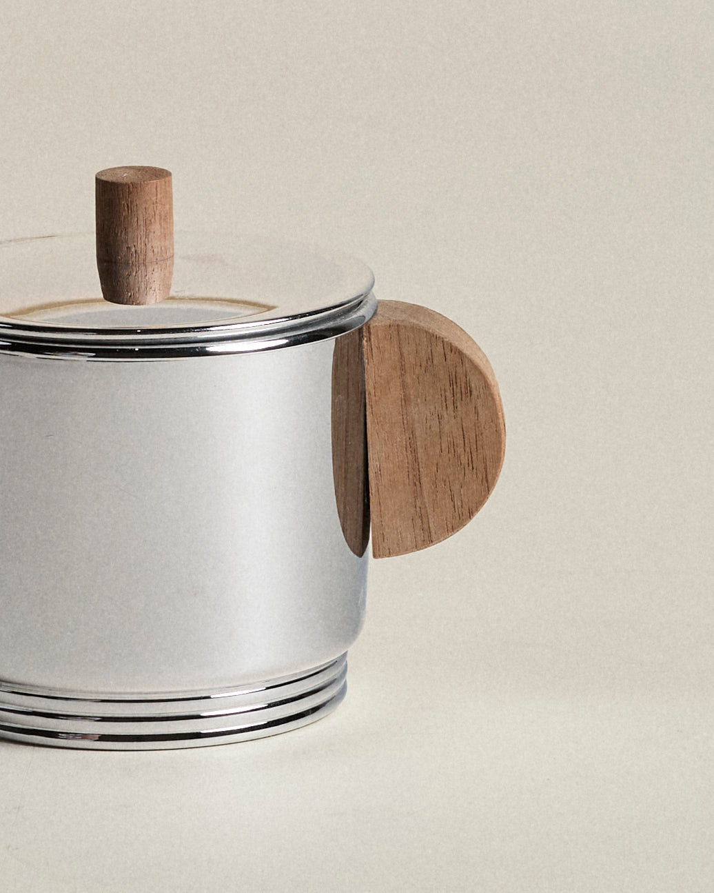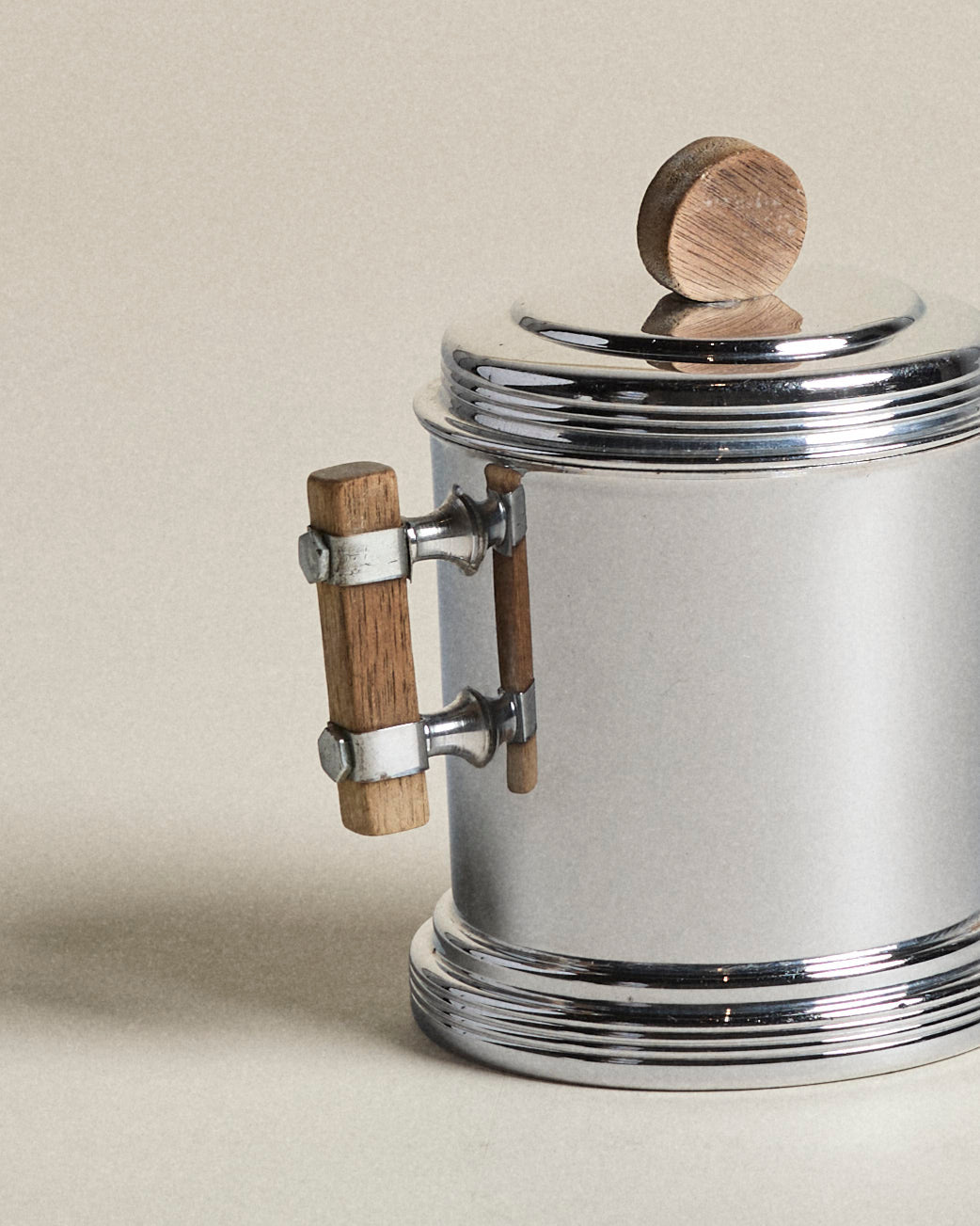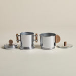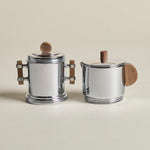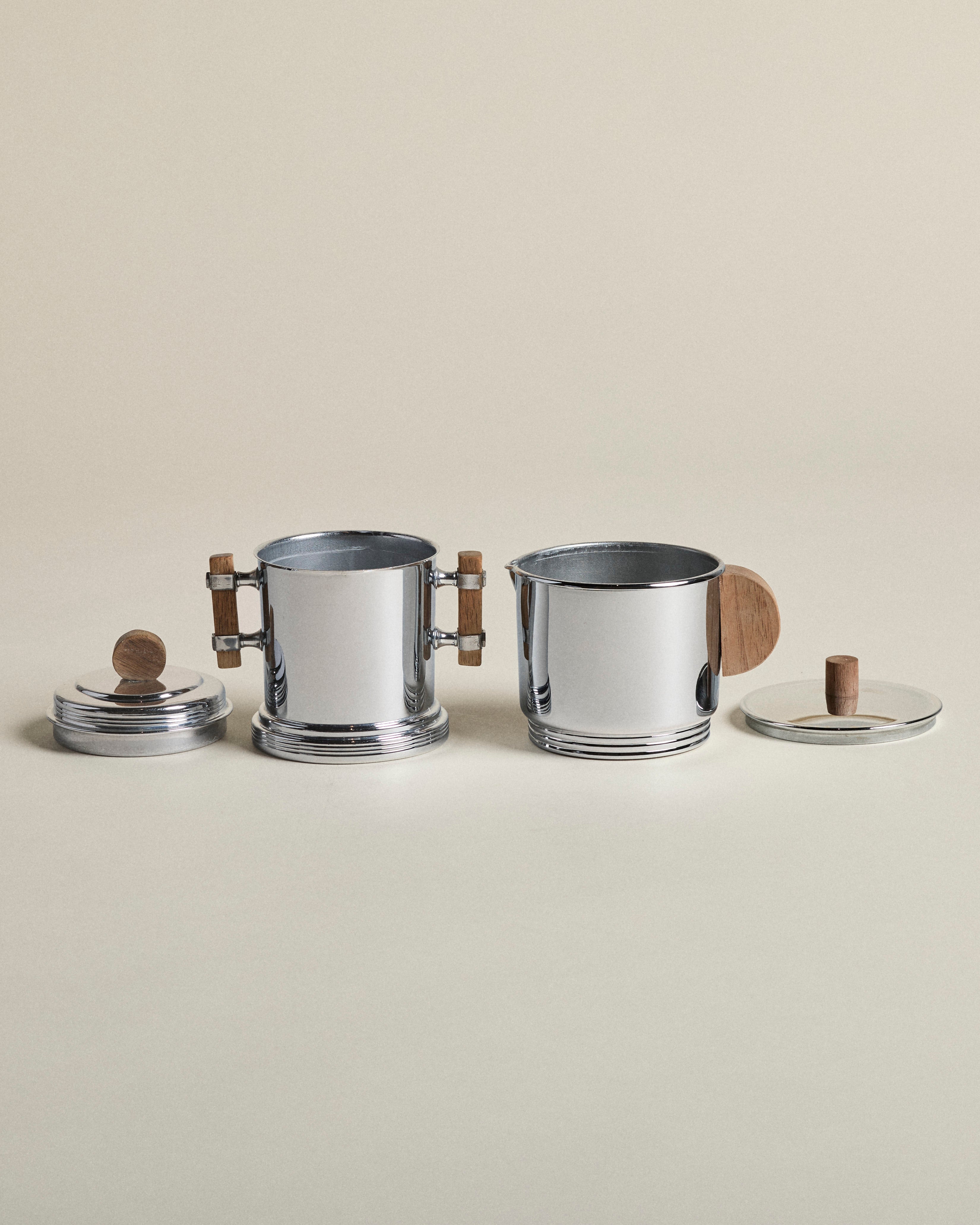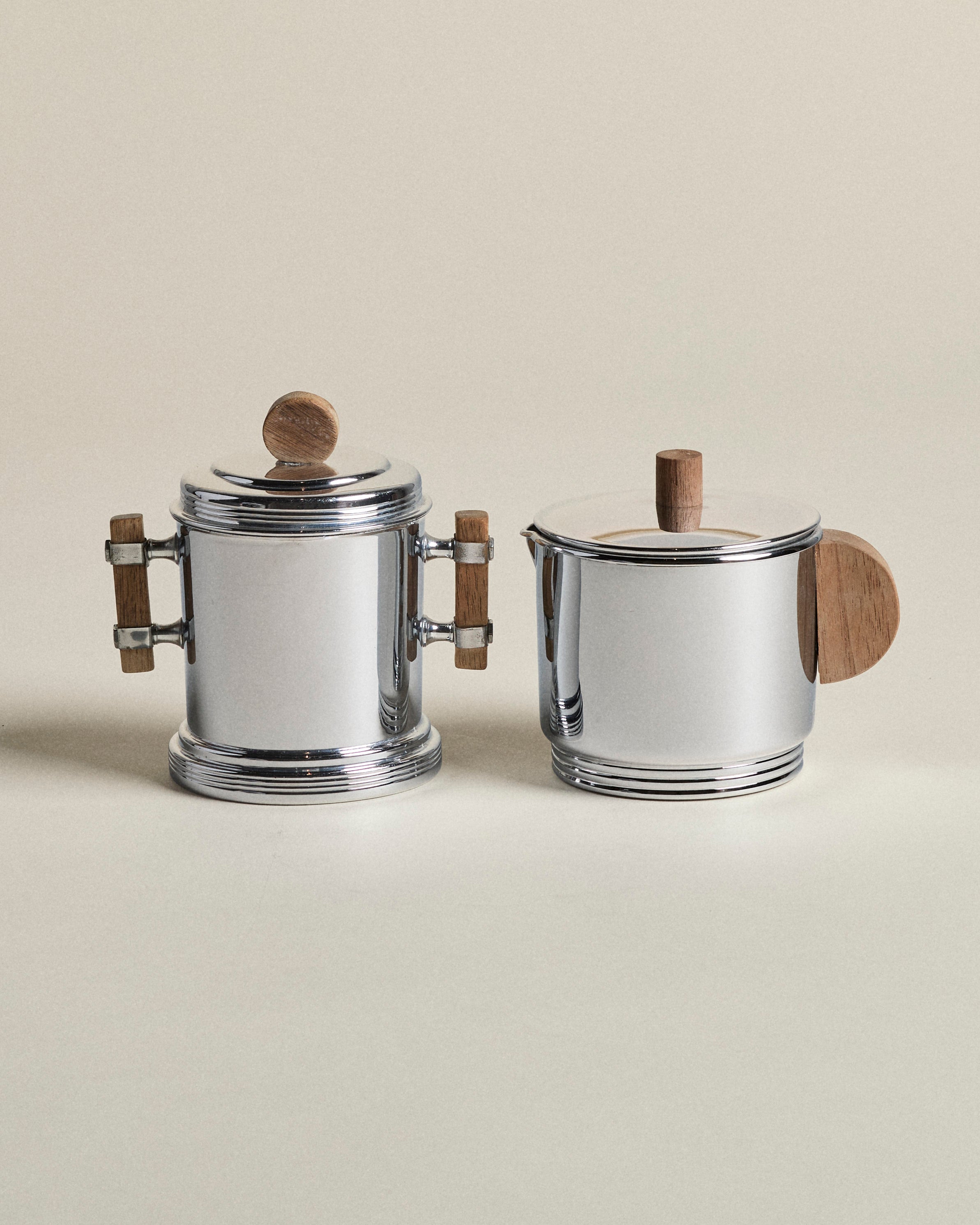 Chrome Sugar and Creamer ā Oak Handles with Tray