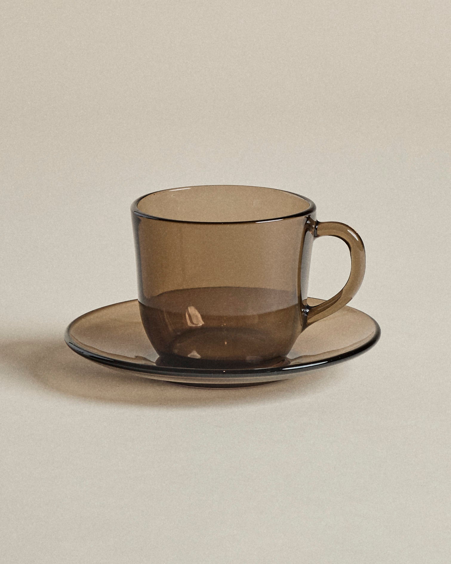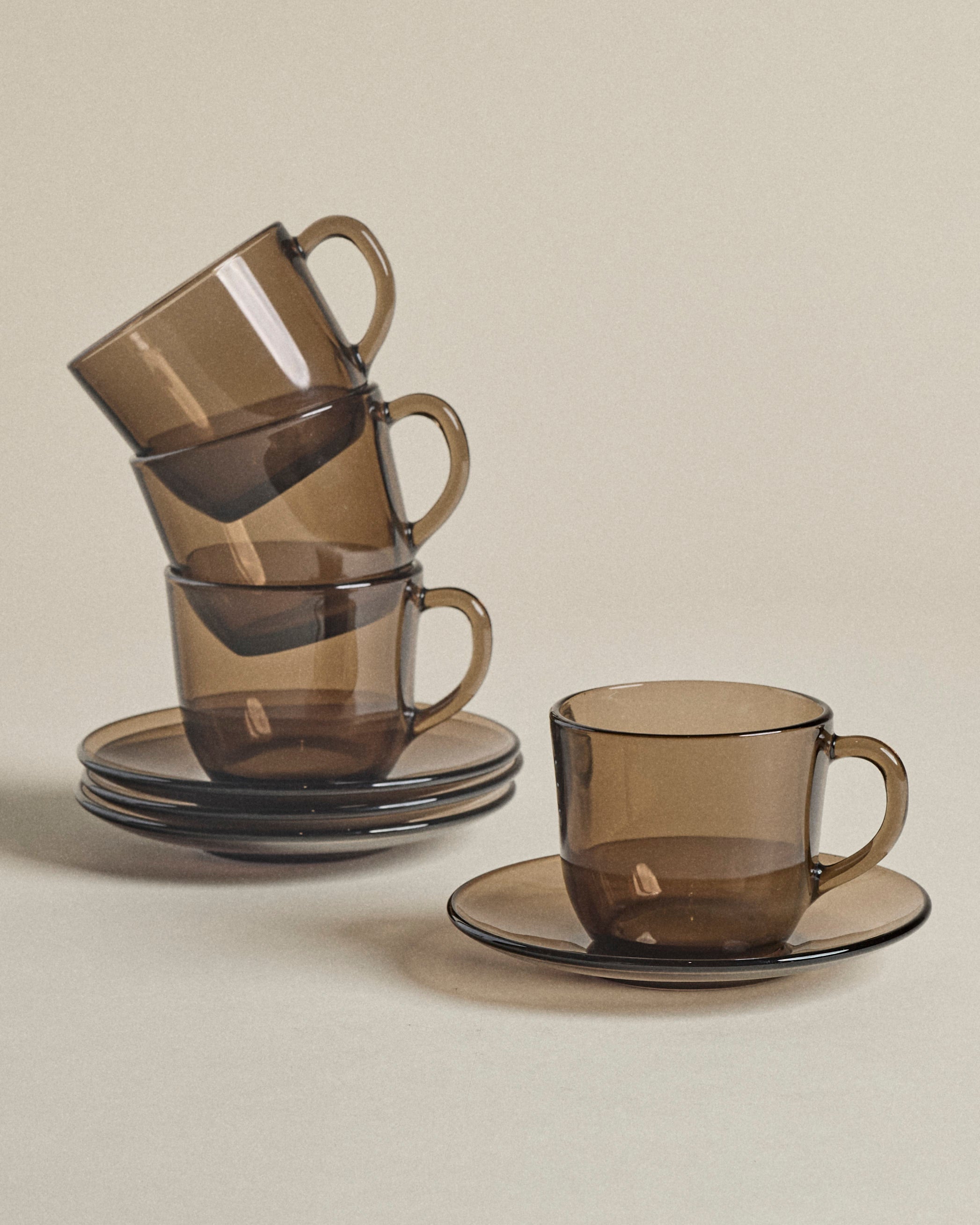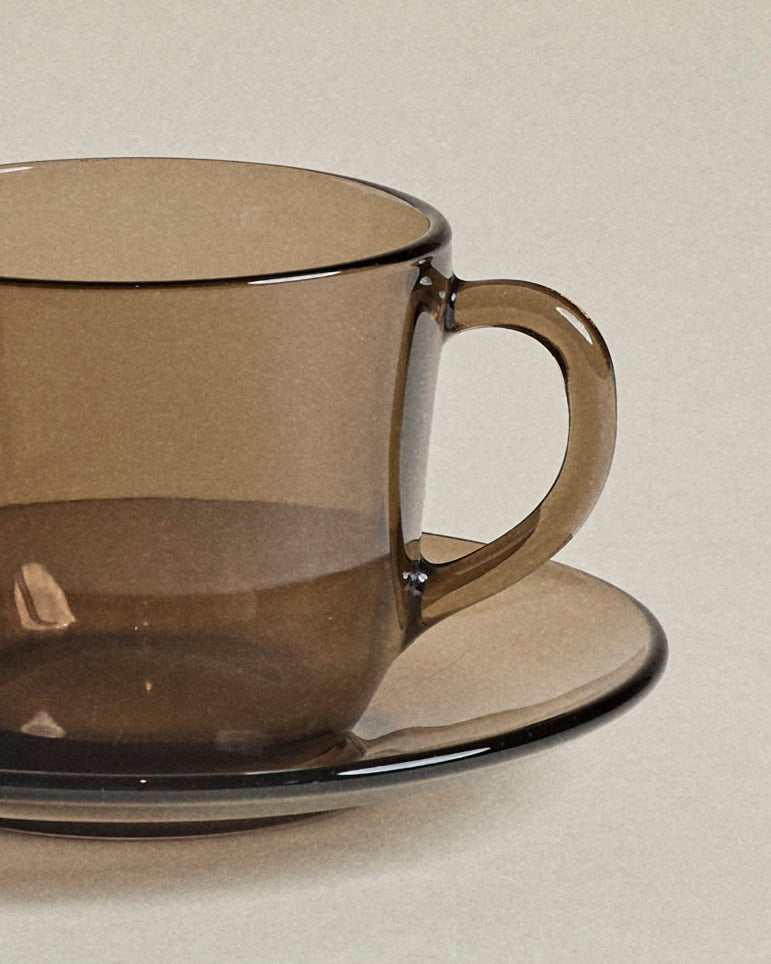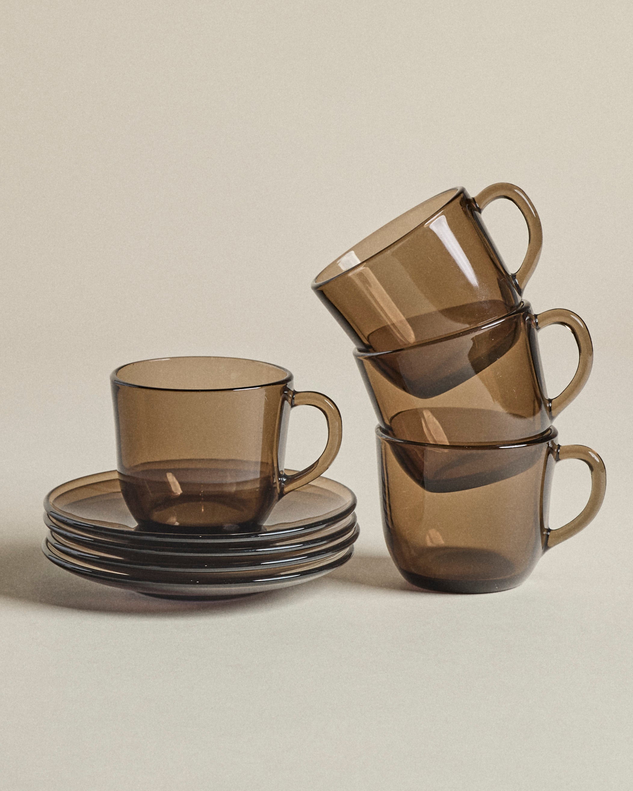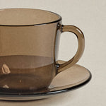 Smoke Glass Tea Cups — Set of Four with Saucers