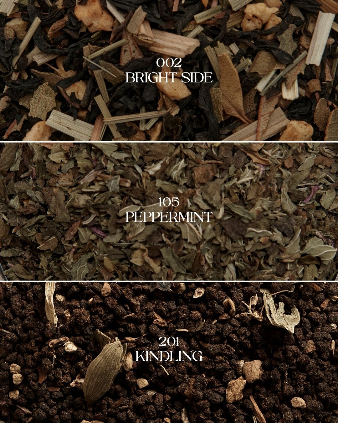 The Hosting tea set brings together three teas designed to warm, restore, and delight: Bright Side, Kindling, and Peppermint. This festive trio evokes the brightness of winter mornings and the comfort of candlelit nights. Together, they form the perfect set for gifting, gathering, or your own quiet season of reflection.